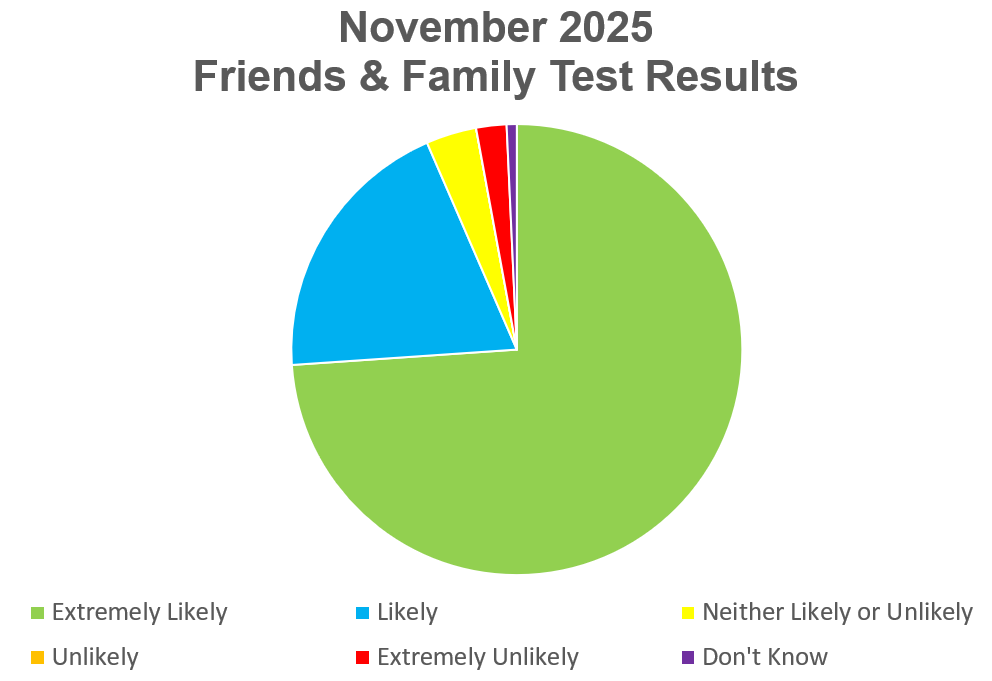 The Friends and Family Test (FFT) is an important feedback tool. It is an opportunity for people who use NHS services to provide feedback on their experience. Listening to the views of patients helps to identify what is working well, what can be improved and how.